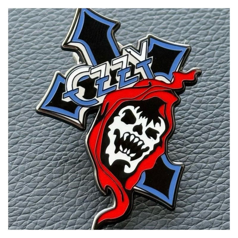 Тираж 30 штук; Размер 45мм; Черный никель, твердая эмаль; Две иглы.