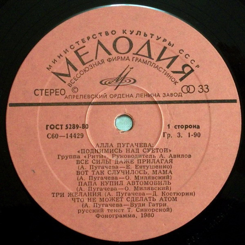 Алла Пугачева - Поднимись Над Суетой LP (без обложки) C 60—14429-30