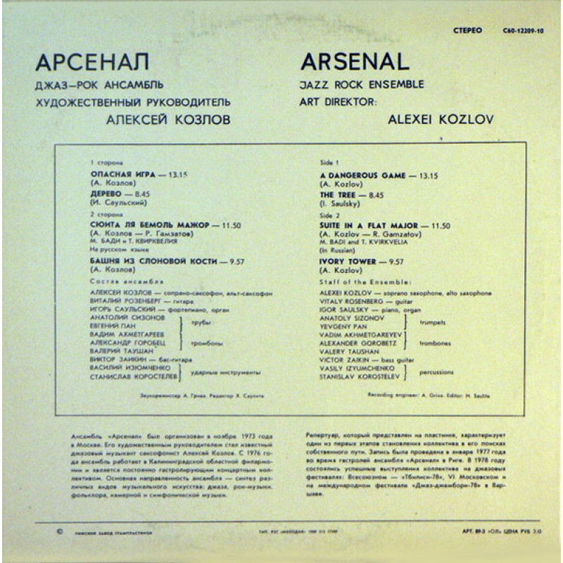 Арсенал - Джаз-рок Ансамбль - Arsenal. Jazz-Rock Ensemble LP Чёрный винил