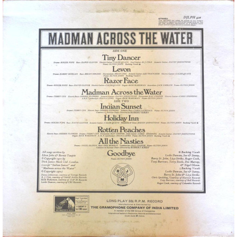 Elton John - Madman Across The Water LP 1971 чёрный винил