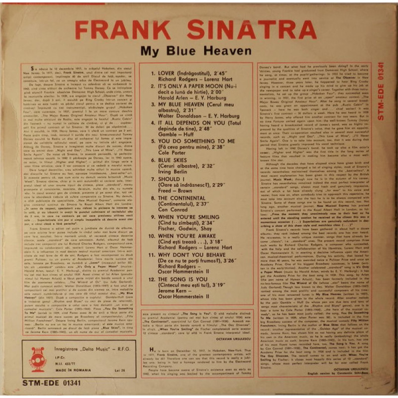 Frank Sinatra - My Blue Heaven LP 1976 чёрный винил