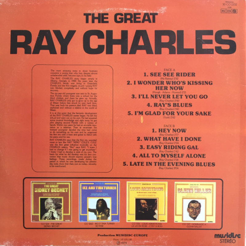 Виниловая пластинка Ray Charles - The Great Ray Charles LP 1972 France 30 CO 1232