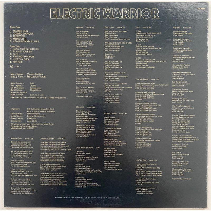 T. Rex - Electric Warrior LP 1971 чёрный винил