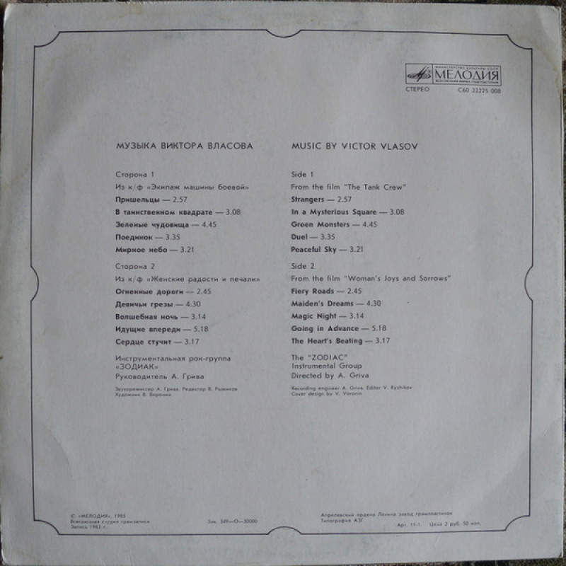 Зодиак – Музыка из кинофильмов LP Чёрный винил